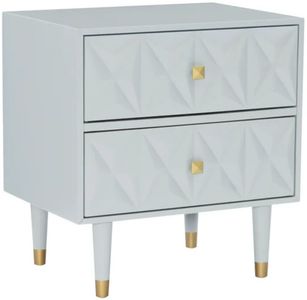 With its geometric patterned front, this geometric nightstand will add texture and depth to your space. The nightstand has a full textured geometric front accented with square gold hardware and round, gold dipped legs. It is truly dressed to impress! Two deep drawers provide ample storage space for books, electronics and more.Read More