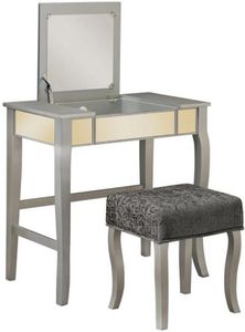 Glamorous in design and style, the Harper Vanity Set is perfect for adding to a bedroom or dressing area. The vanity has an eyecatching silver finish accented by a mirror front and sides. The middle of the vanity top lifts up to reveal hidden storage space.Read More