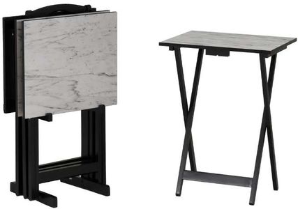 Upgrade your living space with this stylish and functional 5-Piece Folding TV Tray Table Set. Featuring a sleek faux marble top and a sturdy espresso or black wood base, these trays add a touch of modern elegance to any home.Read More